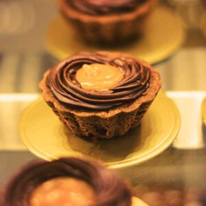 A decadent delight featuring layers of buttery sponge and creamy caramel sauce, topped with crunchy praline granules for a perfect balance of sweetness and texture.