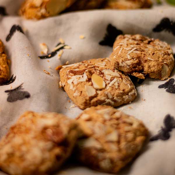 Crisp and golden treats combining the natural sweetness of honey with the nutty crunch of toasted almonds for a wholesome indulgence.